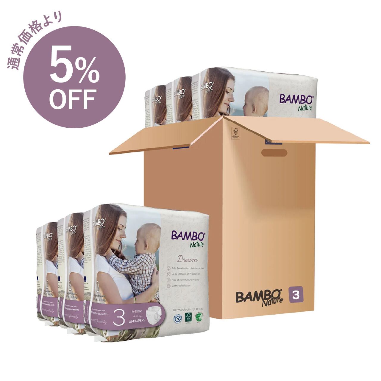 バンボネイチャーは人体に有害な物質を含まない、布に近い紙おむつ。